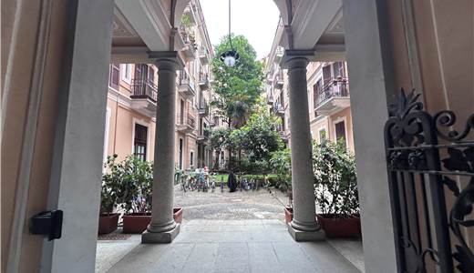 L'appartamento si trova all'interno di un importante e signorile palazzo, dotato di portineria e di un cortile interno piantumato. Numerosi sono i dettagli aristocratici che lo contraddistinguono e che richiamano un affascinante stile architettonico, come il caratteristico portone in legno massiccio, l'ingresso, l'ascensore e la tromba delle scale.